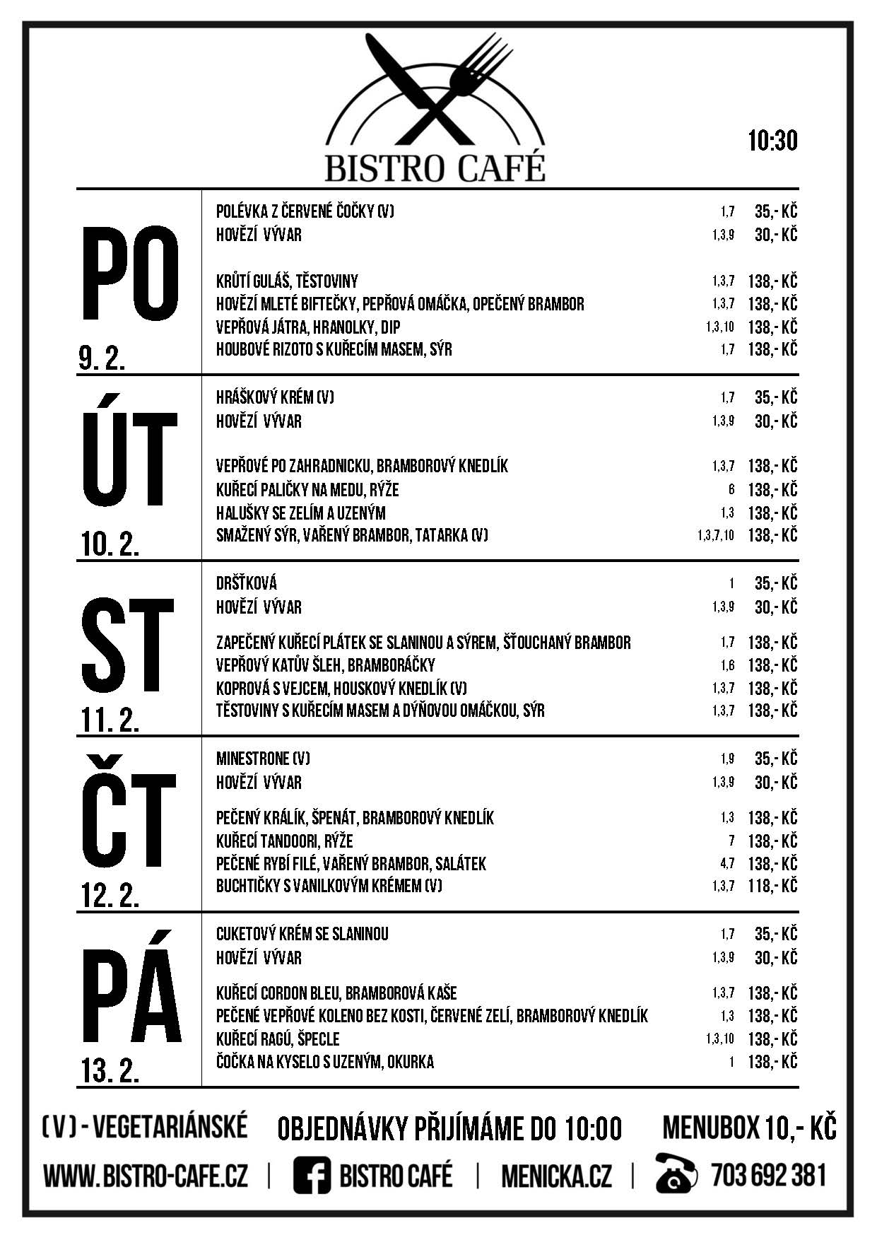 Jídelní lístek od 9. 2. do 13. 2.